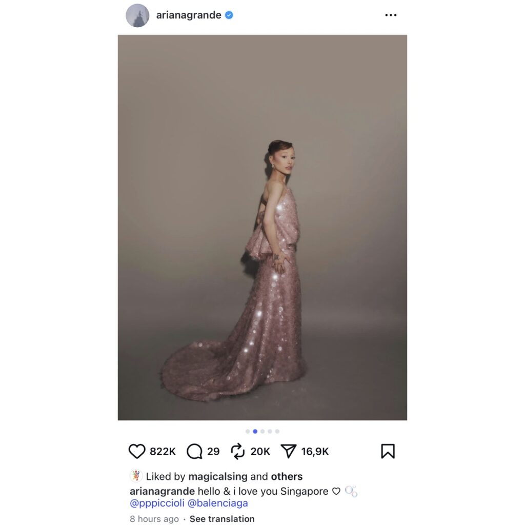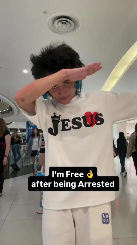 According to social media posts, the man has been identified as Johnson Wen, known online as “Pyjama Man.” Wen later uploaded a video of the encounter to his Instagram account, thanking Grande for “letting” him jump onto the yellow carpet. In a subsequent Instagram Story, he claimed he had been released following an arrest, appearing in a shirt that read “Jesus.”