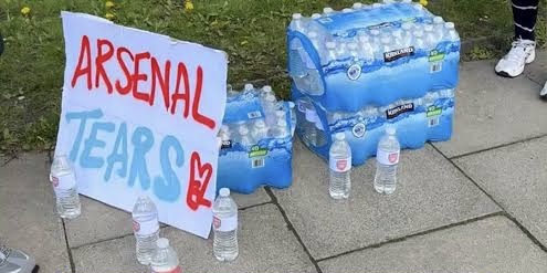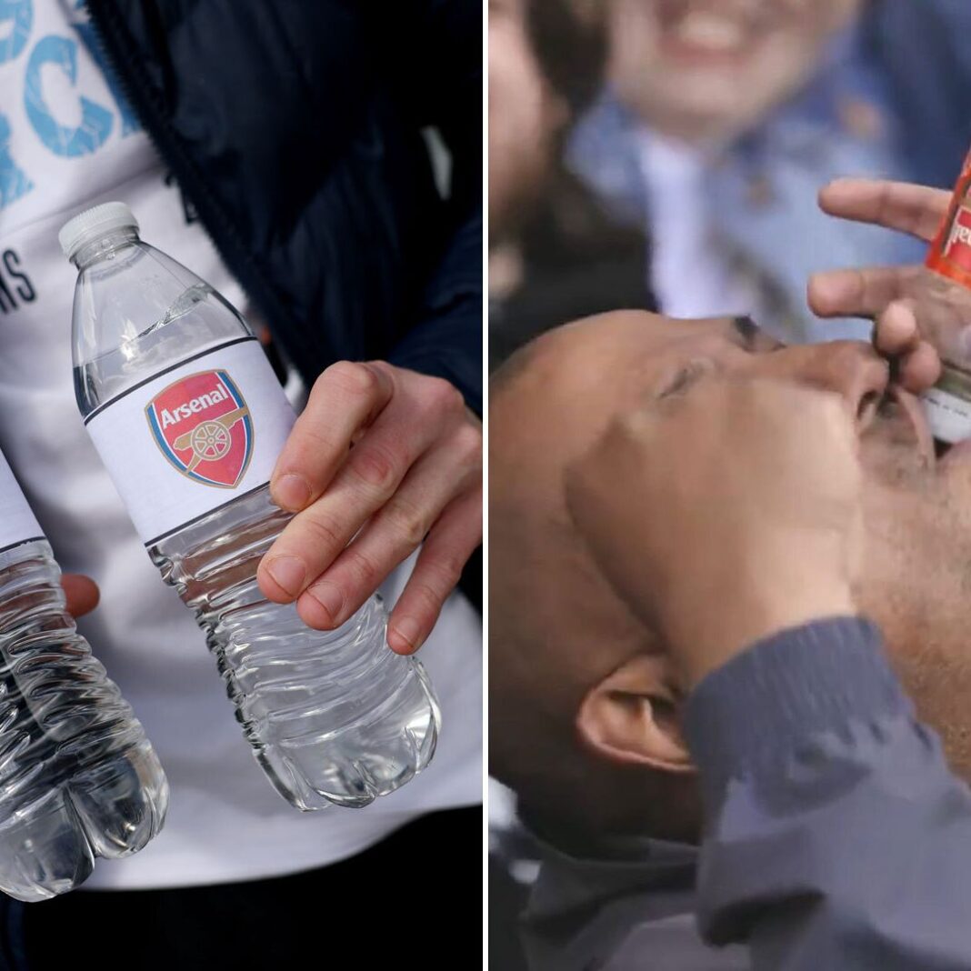 Manchester City supporters created a stir ahead of today’s top-of-the-table clash against Arsenal after placing Arsenal-branded bottles outside the Etihad Stadium, in what many fans described as a psychological jab before kick-off.