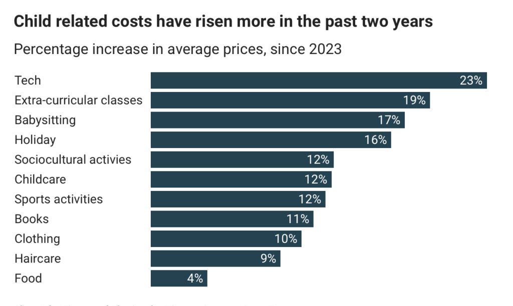 Moneyfarm’s Chris Rudden said the accelerating rise is “unprecedented,” noting that families face pressure from all sides—food, childcare, technology, and the rising importance of social and cultural activities.