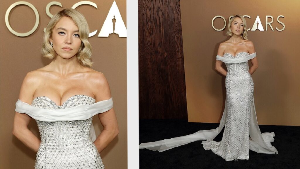 Sydney Sweeney, 28, turned heads in a breathtaking sleeveless gown that sparkled under the lights. Designed with a fitted mermaid silhouette, the dress highlighted Sweeney’s signature hourglass figure.